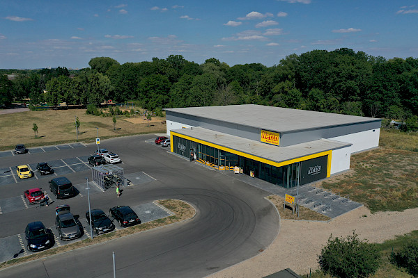 Das zweite Objekt in Teutschenthal im Saalekreis ist in der Ortschaft Holleben zu finden. Der 2021 gebaute Fachmarkt liegt an einem wichtigen Verkehrsknotenpunkt zwischen Halle/Saale, Merseburg und Leuna.